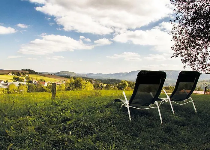 Gelegen binnen|op 4 km van het Nationaal Park Sächsische Schweiz, 10-slaapkamer Panorama-Apartments Weinberghaus heeft een balkon en een zitruimte met uitzicht op de berg. Het appartement heeft wifi, samen met parkeerplaatsen voor gasten, die met de auto reizen.